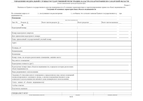 Образец выписки из Единого Государственного Реестра Недвижимости
